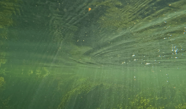 The headspring for Horsehead Spring (top) and light streaming down from the distortion made by my paddle at Horsehead headspring (bottom).