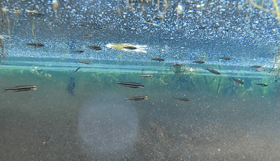 Tiny least killifish above the slightly larger shiners at Minnow Spring (top) and a chain pickerel at Garner Spring (bottom). The camera at Minnow spring was back in the flooded forest and there was a lot of dissolved and particulate “stuff” in the water. The camera a Garner Spring captured a lot of live and dead algae and plants.
