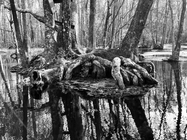 The homemade diving platform above this knot of tree roots on Big Blue Spring suggests that it is likely on dry land in the summer when the floodwaters recede.