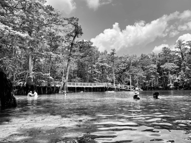 I was unable to find much water quality data on Morrison Spring. About the best that I was able to find was four sets of USGS samples collected from 1969 to 1985 and a 2006 NWFWMD report entitled: Ground water chemical characterization of Morrison Spring, Florida (https://www.nwfwater.com/content/download/6674/48451/WRSR0602.pdf). This report seemed to describe data from wells near Morrison all the way up to the Alabama border. However, their data matched mine (what I collected) quite well, with relatively cold temperatures (NWFWMD = 20.7oC, my data = 20.8-21.5oC at the headspring, 22.7oC downstream), moderate dissolved oxygen (NWFWMD = 3.17 mg/L, my data = 3.02-3.74 mg/L at the headspring, 2.99-4.16 mg/L downstream), and low conductivity (NWFWMD = 226 microS/cm, my data ~230 microS/cm at the headspring, 220-230 microS/cm downstream). The nitrate data that they reported also were quite low (0.180 mg/L). Happily, these data were comparable to the data collected by USGS decades ago, suggesting that Morrison Springs may have been less impacted by human activity than many other springs. However, I did see reports that it was closed due to high bacterial counts in 2014 and I saw recent warnings about the large number of visitors in the warm seasons.