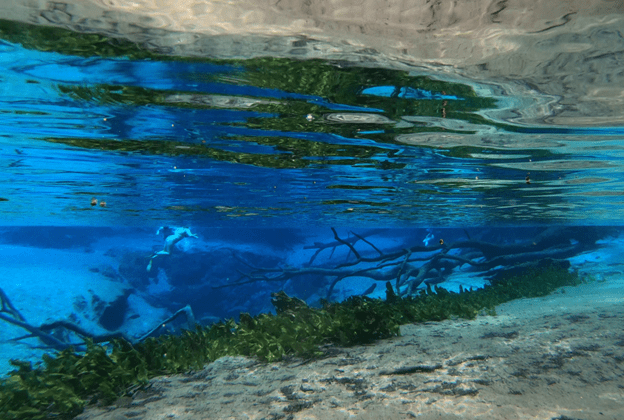 Brunson Landing run just downstream of the headspring above water (top) and below water (bottom).