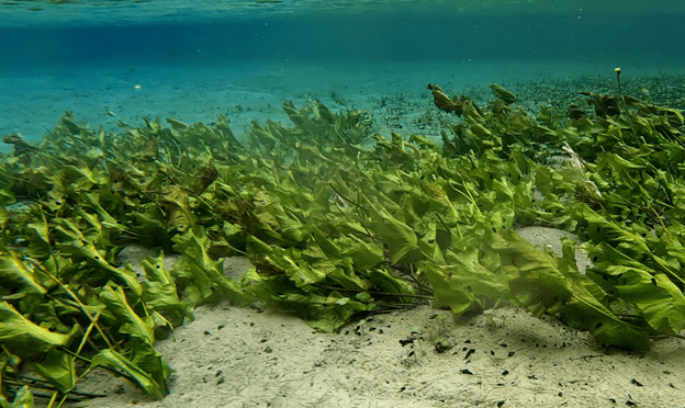 When I got skunked by the large number of visitors at Cypress Spring, I decided to float down to Beckton Spring instead. Although I have read that this spring also can be popular, happily I was the only visitor that afternoon. Beckton sported a slightly more turquoise blue than Cypress Spring, but the water clarity at the headspring was much lower and sadly I was unable to see its vent in person or on video. However, Beckton Spring had nice beds of submerged plants and loads of snails.