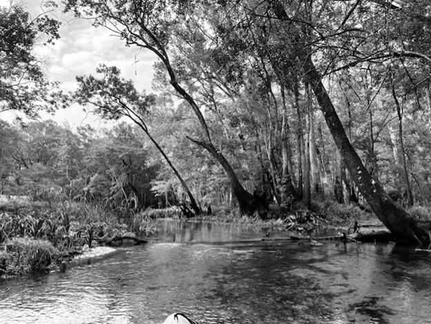 Brunson Landing was actually the first spring that I visited on both trips to the panhandle. On my first trip, in February, I pulled up late in the afternoon to a brown, fast-flowing Holmes Creek at the Brunson Landing boat ramp. I popped my boat in the water and promptly floated right past the entrance to the spring. It was so flooded back into the trees that it was impossible to see where the spring joined the creek. A couple of people in the parking lot clued me onto the existence of a trail to the spring, but even when I followed the obvious trail, I was unable to find the spring under the brown water.