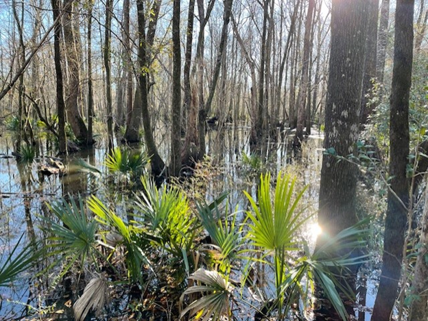 Flooded forest in the vicinity of Brunson Landing Spring. The water was so high that I could not find the spring.