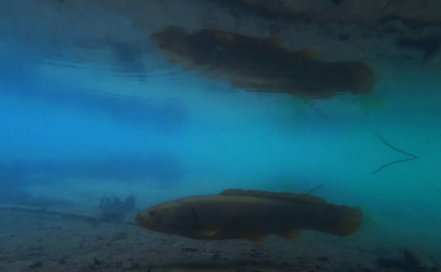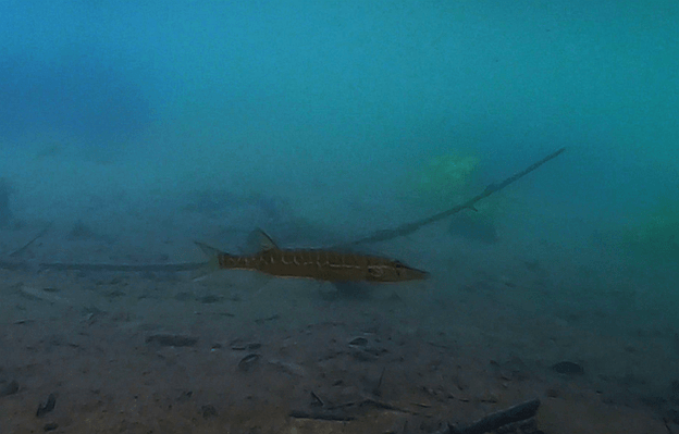 Video of the cool undulating motion of a bowfin’s dorsal fin as it cruises down the Brunson Landing run toward Holmes Creek.