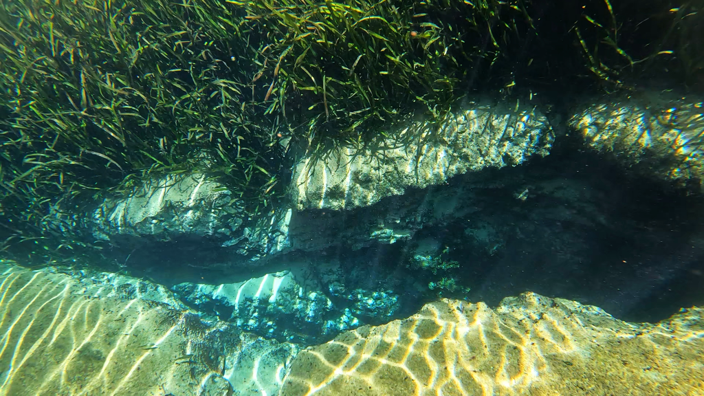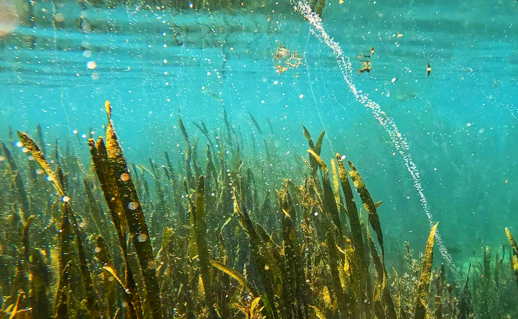 Thick beds of eelgrass blanket most of the bottom of the Jackson Blue run.