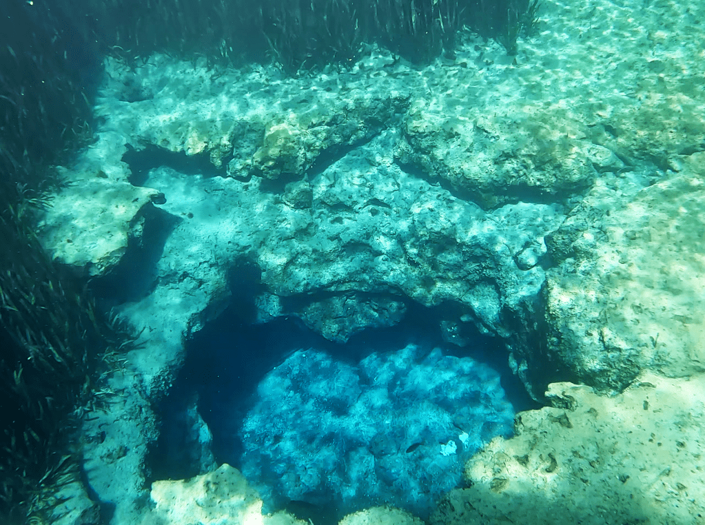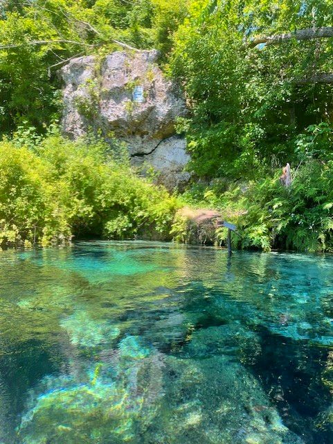 Like most other springs in Florida, the available data for Jackson Blue Spring is a bit spotty. The discharge time series reported by USGS (https://waterdata.usgs.gov/nwis) and DEP (https://floridadep.gov/sites/default/files/JacksonBlue-MerritsMill-nutr-tmdl.pdf) only ranged from 2005 to 2010. Over that period of time, Jackson Blue discharge ranged from 38 to 219 cfs, a massive 576% difference in magnitude from the lowest to highest discharge. The temperatures at the headspring were comparatively cool (USGS data from 1972-2023: 20.5-21oC; 21.1-22.3oC for me). The dissolved oxygen concentrations were high for a spring (USGS: 7-10.3 mg/L at the headspring; 7.05-9.17 mg/L for me). The high values for the headspring suggest that the water issuing from the spring is not underground long. High dissolved oxygen downstream also would have been related to the large producer (plants and algae) populations. The conductivity was low, as expected given the spring’s distance from the Gulf: 197-287 microS/cm for USGS and 280-310 microS/cm for me.