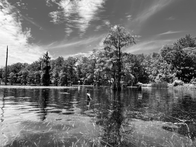 Beyond the swimming area, lovely old cypress trees (Taxodium distichum) produced shade close to the banks.