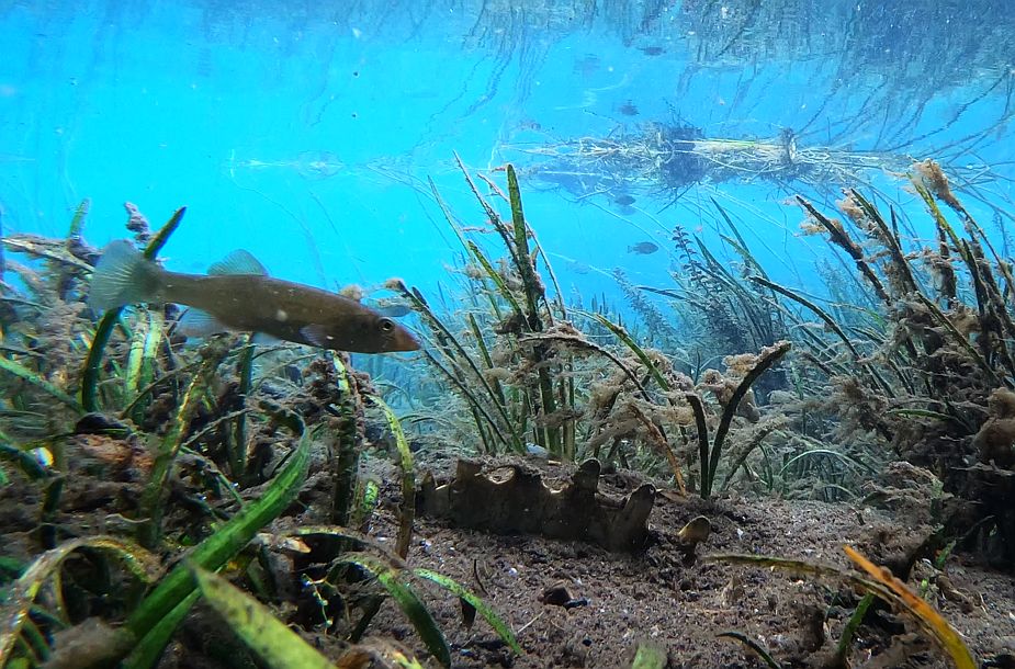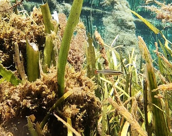 The smaller fish, like mosquitofish, shiners, and killifish, were harder to find in attractive poses on video. Given the large number of predators and clear water, they stuck to the areas with more plants, which obstructed my camera view.