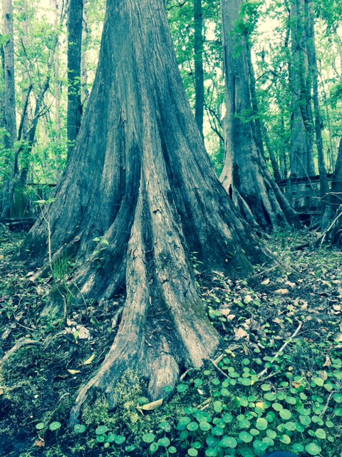 That palm tree was not that far out into the headspring years ago (if I remember correctly, it was on the bank!). The tree that protrudes across headspring in the background fell in due to erosion. Kids like to sit on it now. The eroded bank is visible behind the tree. That bank, like the bank under the overlook, has been falling in for years. Sigh.
