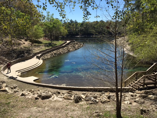 The vent. I took this photo years ago, but it shows the long, thin vent. The big springs on the Suwannee, Manatee, Fanning, and Troy, have more circular vents. In the summer, there are many more swimmers than shown in this photo.