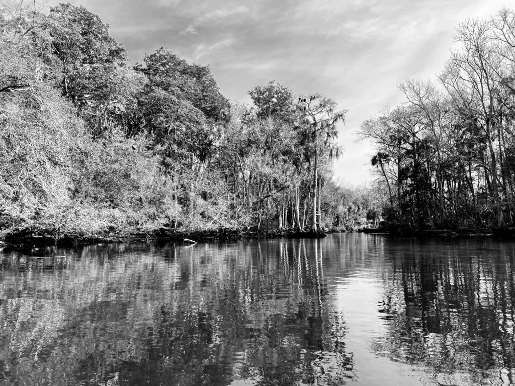 Even with the substantial flow inputs, the spring is narrow and intimate in the upper mile or so. In fact, at low water, the spring can be so shallow in the upper reaches that kayaks need to be portaged in spots. I have not yet paddled lower Gum Slough, but given how braided it is and photos that I have seen, I think that it would feel intimate downstream as well.