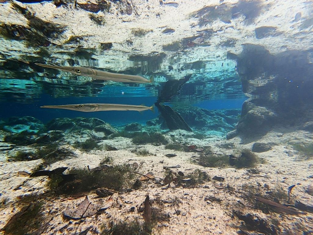 Gum Spring # 4 with a boatload of Florida gar (Lepisosteus platyrhincus) near the surface. That group was the largest number of Florida gar that I have ever seen together.