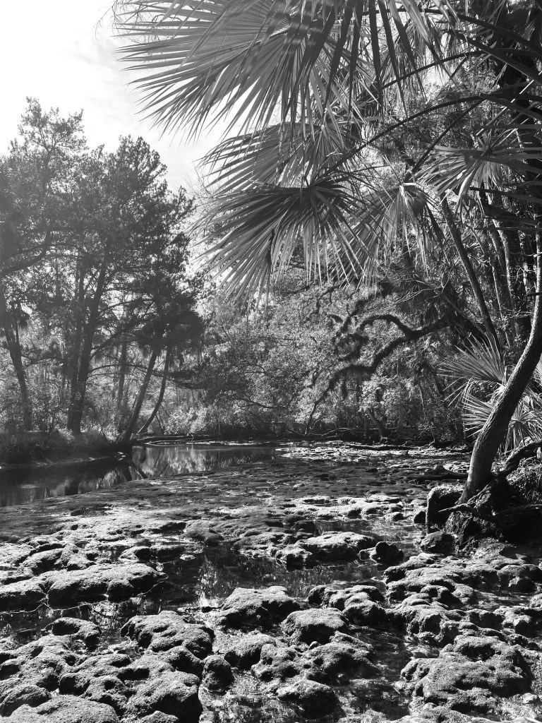 Out on Gum Slough, the spring feels very remote. However, the Sarasota Water Atlas categorized Gum Slough as “Impaired” (https://sarasota.wateratlas.usf.edu/waterbodies/rivers/14493/gum-slough) and the thick algal beds that I observed on multiple visits would support this interpretation. The discharge of Gum Slough has varied between 55 and 159 cfs, according to the USGS (https://waterdata.usgs.gov/nwis). The Gum Slough Minimum Flow and Level plan puts the average streamflow at 98 cfs over the period of 2003-2010, making it just shy of first magnitude, although the time series was quite short (https://www.swfwmd.state.fl.us/sites/default/files/documents-and-reports/reports/Original-Gum_MFL_Report_0.pdf).
