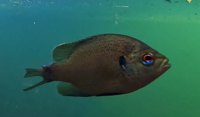Spotted sunfish attacking a) food that is impossible to see (top) and b) my float (bottom).