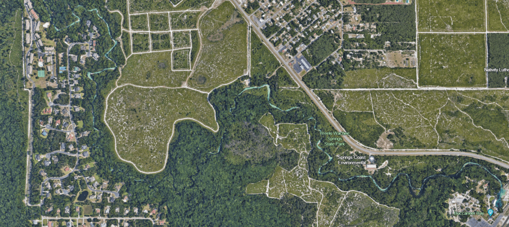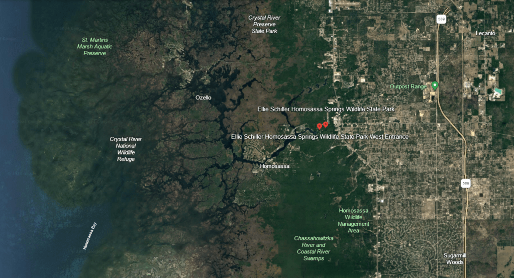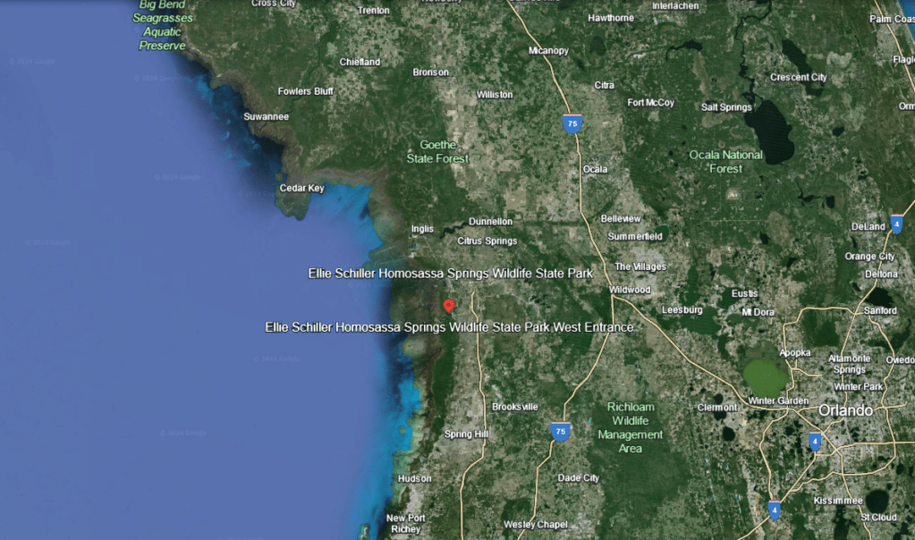 Floridians also like to name things Gum swamp. I titled this post as I did because “Gum” and some version of “slough” or “swamp” show up all over the state (a slough is essentially a flowing swamp). There’s the Gum Slough near Lake City that is a described by Apple Maps as a lake, but looks more like a wetland. There’s a Gum Swamp at the northern end of the Okeefenokee Swamp. There are Big Gum Swamp, Little Gum Swamp and Gum Swamp Creek at the southern end of the Okeefenokee. There’s a Gum Swamp southeast of Jacksonville. There’s Gum Root Swamp northeast of Gainesville. There’s a Gum Swamp that appears, on Google Earth, to connect the Manatee River and Myakka River watersheds. And there’s a Gum Swamp Branch just north of the Hardee Correctional Institution that, if I squint sideways, might connect with the Gum Slough on the Manatee River. And finally, there’s the Gum Swamp surrounding the headwaters of the topic of this post: Gum Slough spring that flows into the southern Withlacoochee River (and yes, we have two Withlacoochee Rivers as well).