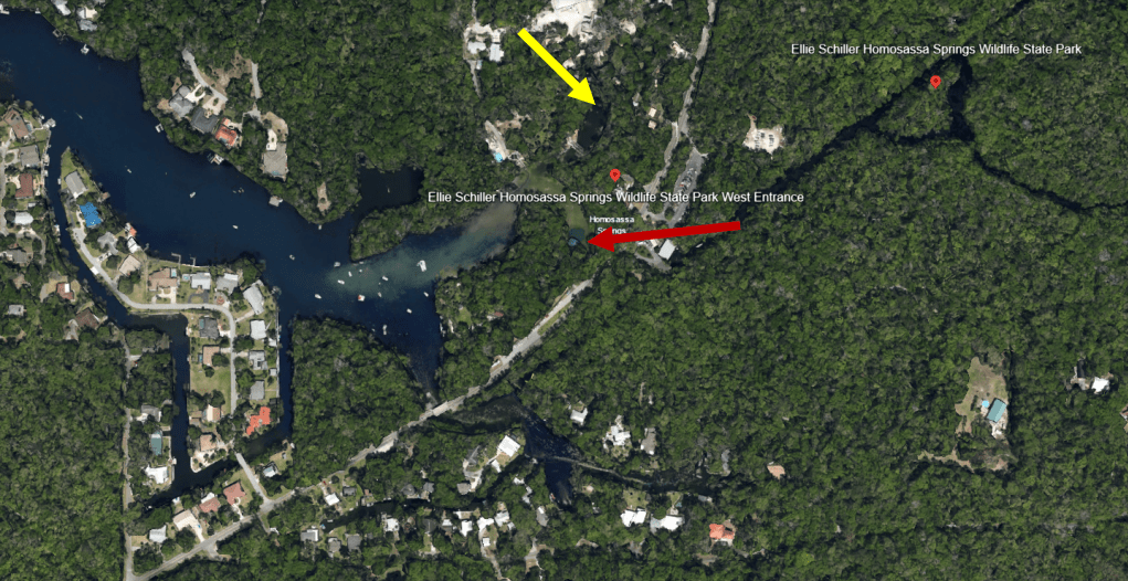 At least seven vents provide the majority of the flow for the spring, three at the start of the spring, three about a mile downstream, one more that I did not find, and perhaps even a few others that have only been seen on a SWFWMD lidar map (kind of like radar). I was told by one of the owners of the nonprofit that the flow from first three springs is equivalent to a second magnitude spring, but the addition of the other four springs downstream elevates the flow to a first magnitude spring.
