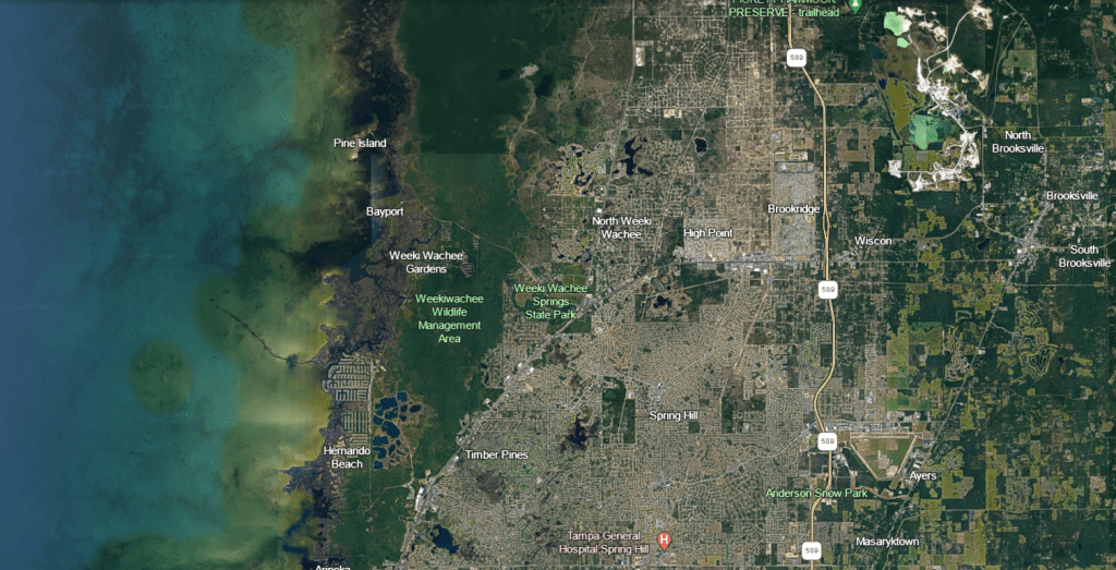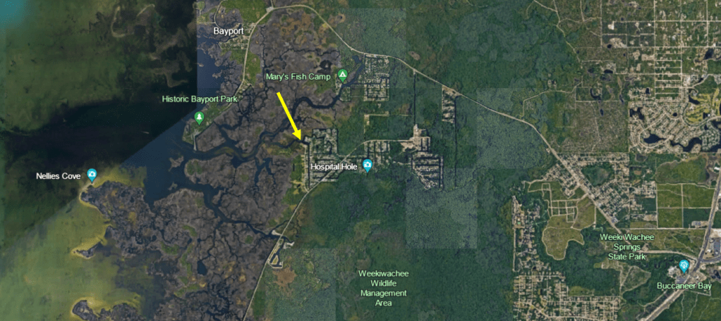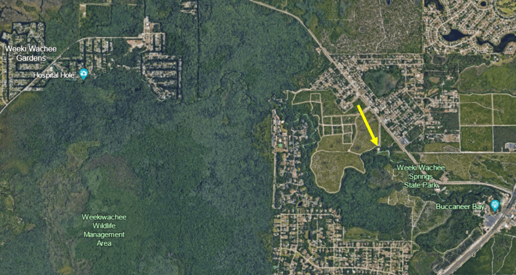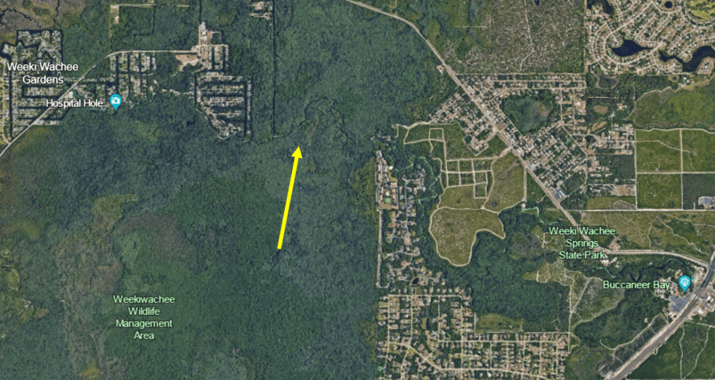 Google Earth image of some of the “Gum” slough/swamps in Florida. The yellow star indicates the location of the Gum Slough that is the topic of this post.