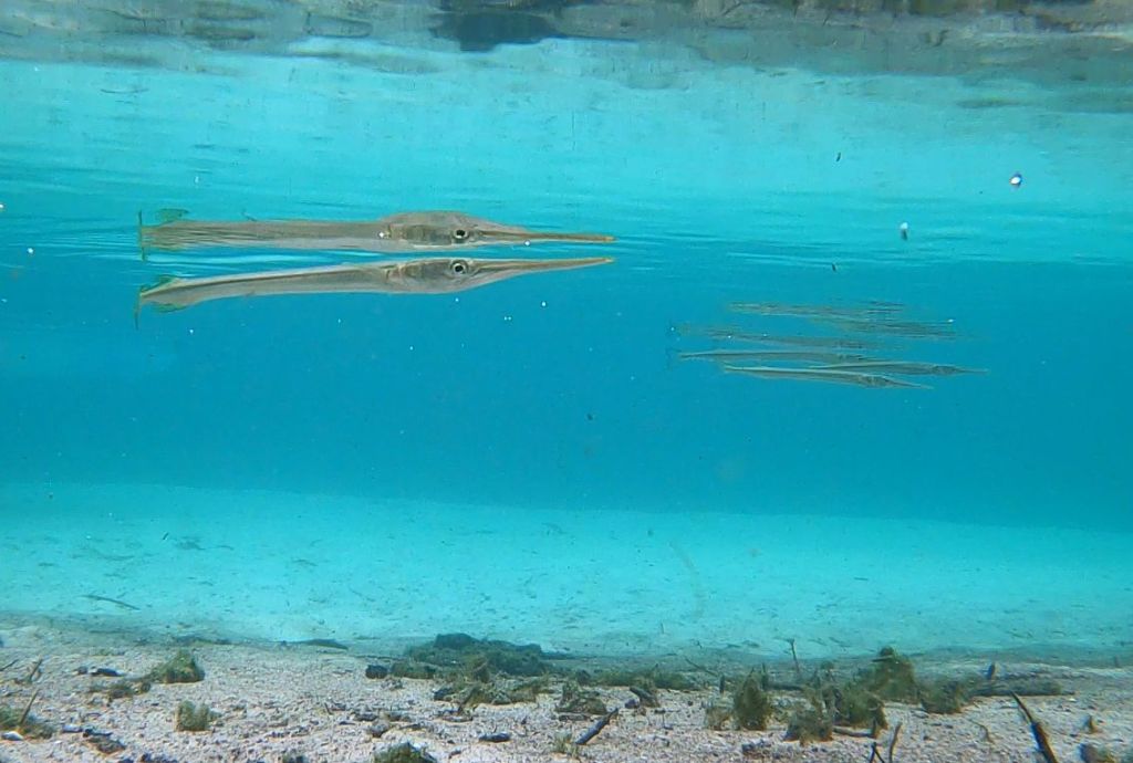 The Florida gar following each other around–mating?