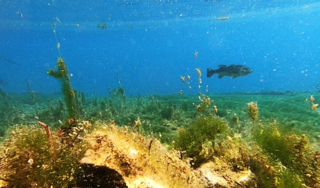 Some impressive predators: a largemouth bass cruising through the site (top) and a video of another feeding (bottom).