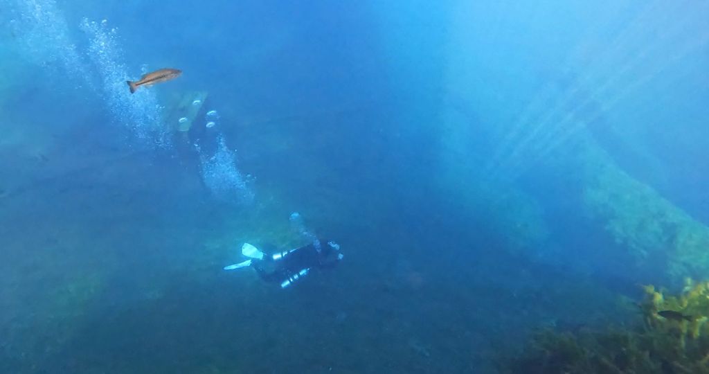 Filming fish is both easy and hard at Rainbow. The clear water makes the fish easy to see and identify, but its depth makes it hard to set cameras. The vistas are stunning.