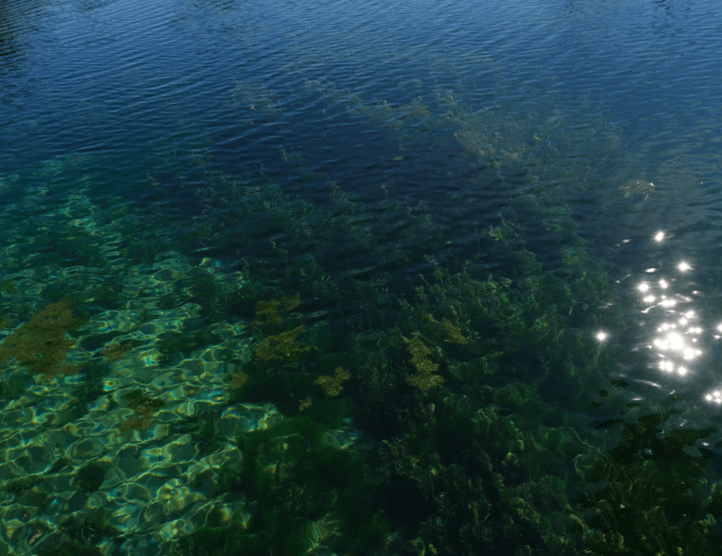 View of the headspring pool, looking back toward the swimming area. It is a blue to which swimming pool owners aspire.