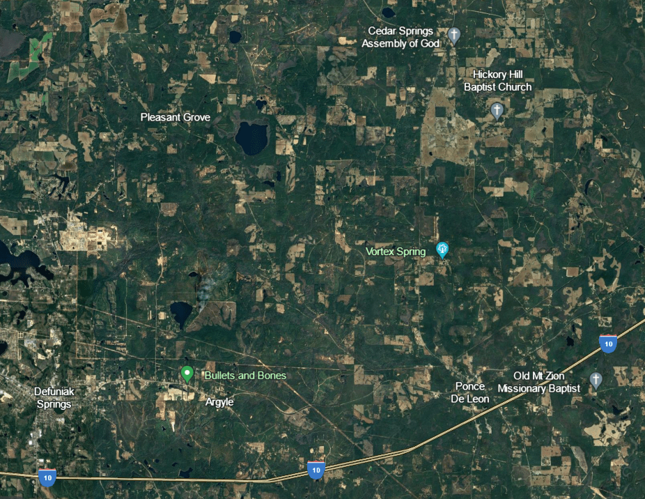 The spring is west of Tallahassee, well into the panhandle, in a landscape of uncut forest, silvaculture, agriculture and small towns.