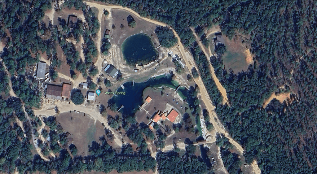 The spring run itself is called “Blue Creek” and flows eventually into the Choctawatchee River. The river flows into Choctawatchee Bay, the west side of which is open to the Gulf at Destin.
